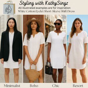 Adrianna Papell White Cotton Eyelet Short Sleeve Shift Dress Size 4 Keyhole Neck