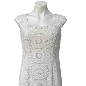 Adrianna Papell White Ivory Lace Eyelet Sheath Dress, Sleeveless Women's Size 10