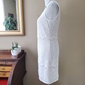 Adrianna Papell White Lace Shift Sheath Dress Sleeveless Size 8