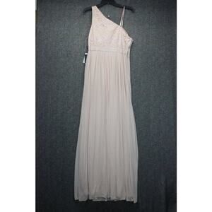 Adrianna Papell Women Pink One Shoulder Beaded Lace Gown Dress Size 12 NEW