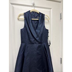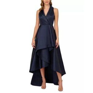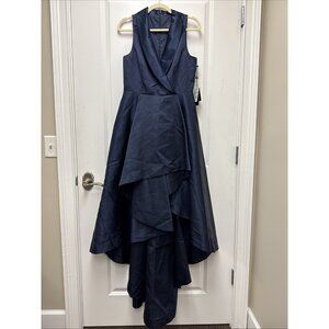 Adrianna Papell Women Size 10 Navy Blue Sleeveless High-Low Tuxedo Gown Dress