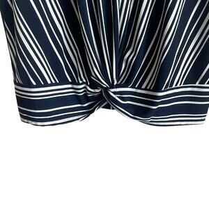 Adrianna Papell Women Top L Navy Striped Twist Knot Front Nautical Casual Office