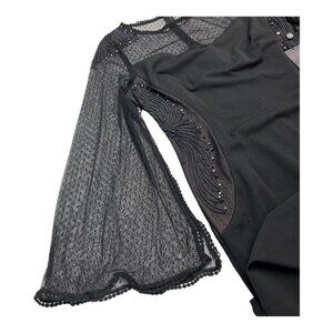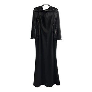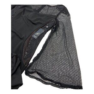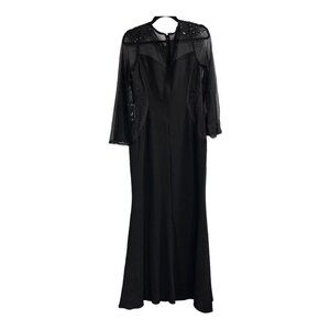 Adrianna Papell Womens 10 Crepe and Point D'esprit Gown Black Embroidered Sheer