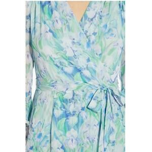 Lightweight, airy and floats like a dream, our softly woven chiffon faux wrap dress is designed in a seriously romantic floral print. We love the surplice v-neckline, three-quarter bell sleeves, self-tie belt and ruffled high/low hem. Perfect for bridal showers, brunch dates, wedding receptions and packs easily to take on vacation.