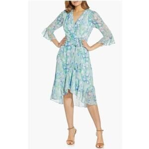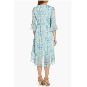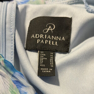 Adrianna Papell Womens 14 Blue Iris Print 3/4 Sleeve Chiffon Dress Lined