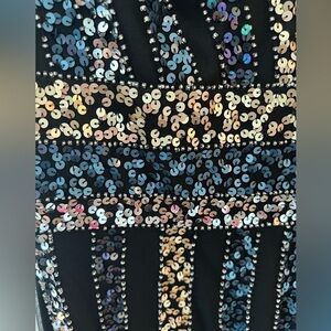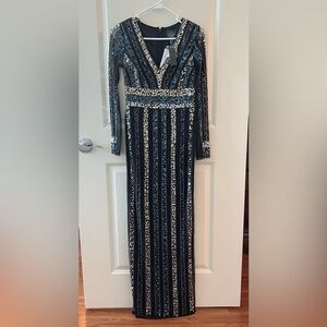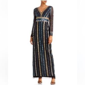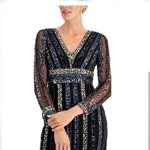 Shimmery vertical stripes accentuate the column-esque shape of this exquisite Adrianna
