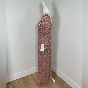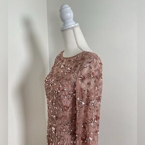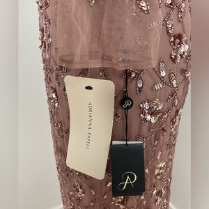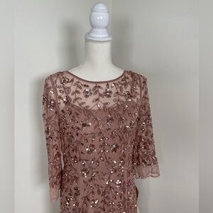 Adrianna Papell Women's Beaded Illusion Column Gown Color-Rose Gold Size 10 NWT