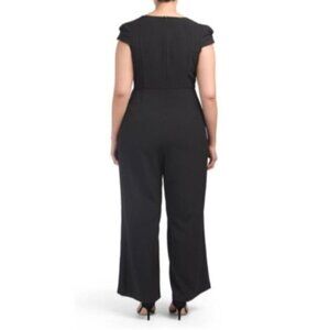 Adrianna Papell Womens Black Square Neck Cap Sleeve Wide Leg Jumpsuit Plus Sz 22W NWT