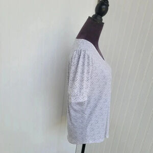 Adrianna Papell Women’s Blouse Stetch White Black Dots Flutter Sleeve Sz M