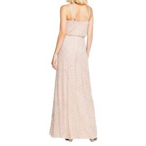 Elegant Adrianna Papell gown featuring intricate blush and gold beading. Perfect for formal events, this size 4 dress combines style and sophistication.
