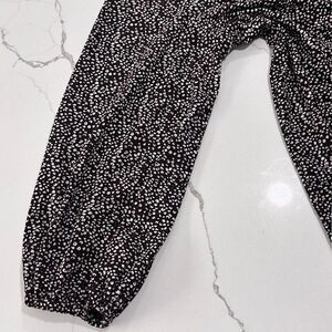 This Adrianna Papell Long Sleeve Flowy Blouse is a versatile piece perfect for the fall season. This boho-inspired top features a delicate pattern, V-neckline, and balloon sleeves, adding a touch of whimsy to your wardrobe. Made from lightweight cotton fabric, this pullover blouse is easy to care for and suitable for various occasions. With its regular fit and collarless design, this blouse offers both style and comfort for the modern woman.