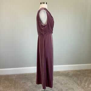 ~ Sleeveless ~ Asymmetric neckline ~ V-back ~ Fit and flare silhouette ~ Below the knee hemline ~ Soft, stretchy velvet fabric ~ Pleated at bodice ~ Bra-friendly ~ Concealed side zipper with hook and eye closure ~ Fully lined ~ Stretchy polyesterspandex