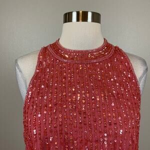 Adrianna Papell Women's Cocktail Dress Size 20W Coral Pink Sequined Mini Sheath