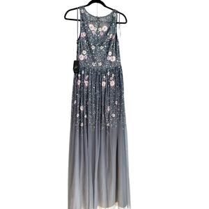 Adrianna Papell Women's Dusty Blue Multi Beaded Mesh Long Dress Size 4 NWT