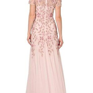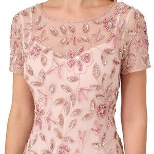 Adrianna Papell Womens Floral Beaded Formal Dress Gown Blush Pink Size 14 NWT