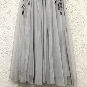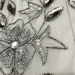 Preowned and could use a dry clean. Dirty at the bottom of dress and one spot where the beads are falling off. Please see photos.