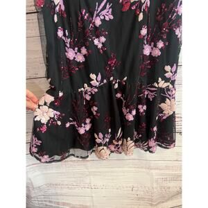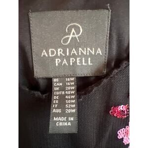 Adrianna Papell Womens Floral Sequined Cocktail Dress Black Pink Size 16W NWT