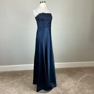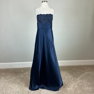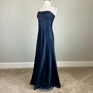 Adrianna Papell Women's Formal Dress Size 6 Blue Strapless Satin Gown and Jacket