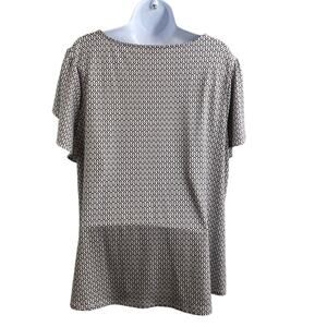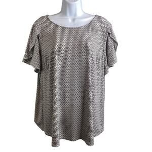 Adrianna Papell Women's Gray Print Flowy Top Size 1X Flutter Sleeves Scandi