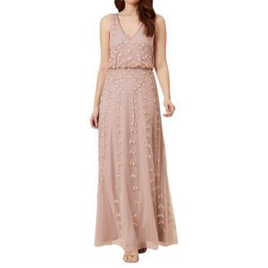 Adrianna Papell Women’s Hand Beaded Long Blouson Mermaid Gown in the Size 12
