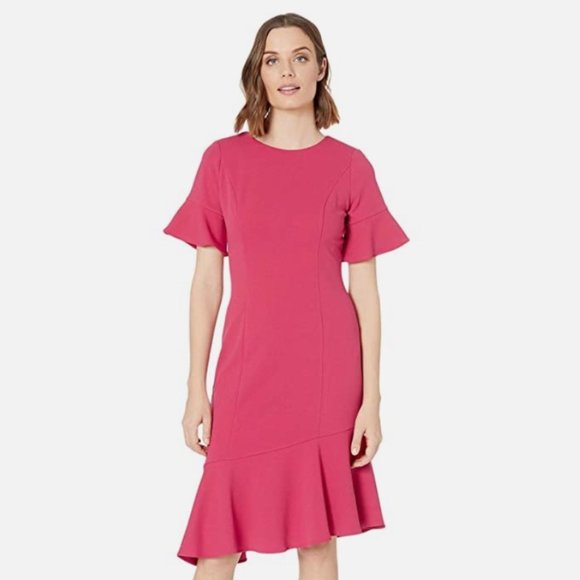 Adrianna Papell Women's Knit Crepe Ruffle Midi Dress