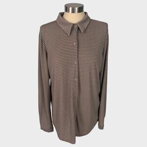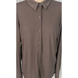 Adrianna Papell Womens Large Button Front Blouse Gray Brown Print