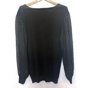 Adrianna Papell Womens Lightweight Sweater Size XL Sheer Balloon Sleeves Gold Metallic Dots Preppy