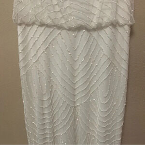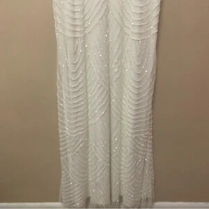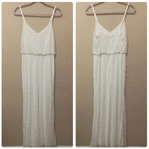 Adrianna Papell Women's Long Beaded Blouson Gown in White NWT Size 10