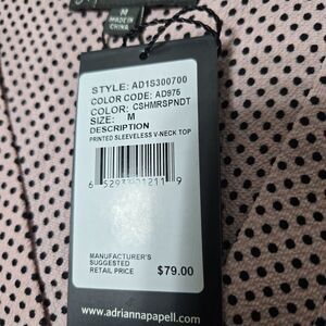 Adrianna Papell Women's M Pink Black Polka Dot V Neck Sleeveless Blouse Tank NWT
