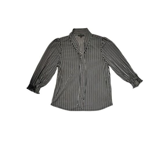 Adrianna Papell Women's Medium Black Striped Three-Quarter Cuff Blouse Shirt 265