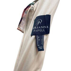 This enchanting Adrianna Papell dress is an exquisite example of delicate design and refined taste. The soft, flowing fabric adorned with a vivid floral pattern creates a sophisticated silhouette, enhanced by the playful ruffles cascading along the neckline and hem. A captivating choice for warm weather, it offers an elegant, feminine touch to your wardrobe.