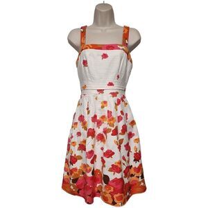 Adrianna Papell Women's Multicolor Floral Beige/Orange Fit-Flare Knee Dress Sz 6