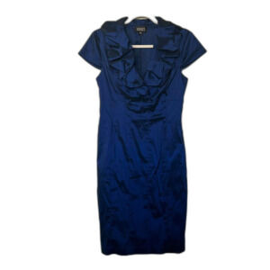 Adrianna Papell Navy Blue Taffeta Ruffle Collar Cocktail Dress