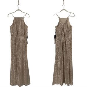 Adrianna Papell Women's Nude Sequined Blouson Halter Formal Gown Sz10M $179