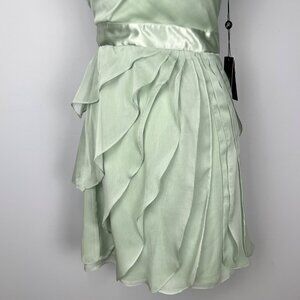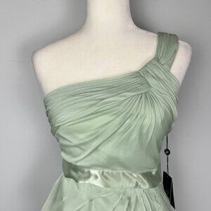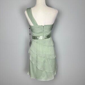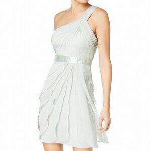 Adrianna Papell Womens One Shoulder Chiffon Mini Formal Dress Mint Green size 2