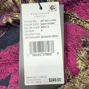 Adrianna Papell Womens One Shoulder Jacquard Dress Navy/Pink 8