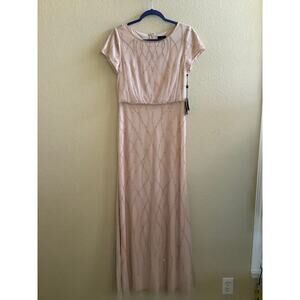 Adrianna Papell Women's Pink Short Sleeve Embellished Overlay Gown Sz 4 NWTS