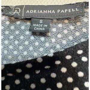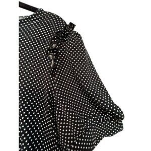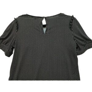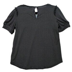 Adrianna Papell Womens Polka Dot Short Sleeve Blouse S Black & White Ruffle Shou