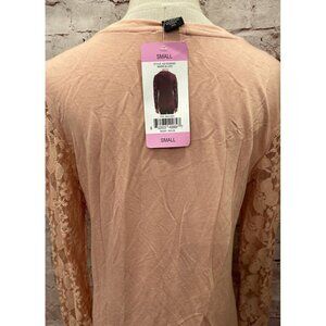 Adrianna Papell Womens Pullover Lace Shirt Long Sleeve Warm Blush Size Small NEW
