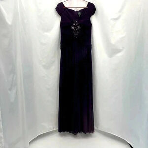 Adrianna Papell Women's Purple Gown 12 Sequin Ruched Party Formal Evening Prom