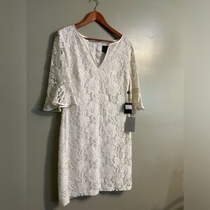 Adrianna Papell Womens Ruffle Cuff Sleeve Lace Cream Cocktail Dress Sz 10 NWT