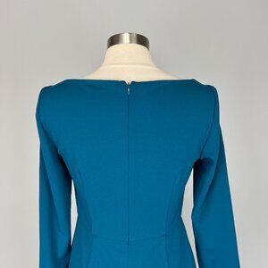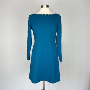 Adrianna Papell Womens Scalloped Neck Dress Teal Blue Cutout Long Sleeve size 6