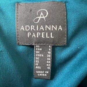 Adrianna Papell teal scalloped neck long sleeve party dress