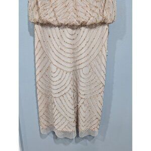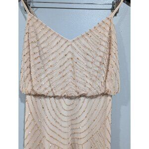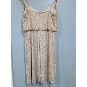 Adrianna Papell Women's Sequined Beaded Blouson Dress Taupe/Pink Strappy Sz 2. Please note one small section on the mid-back where a few rows of beads have come out, see attached picture. All measurements are approximate.
