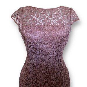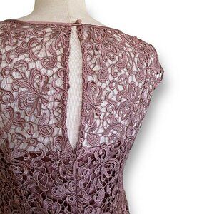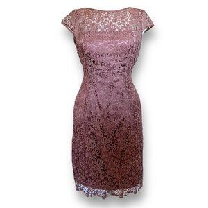 Adrianna Papell Womens Sheath Dress Sz 8 Mauve Crochet Lace Cocktail Cap Sleeve