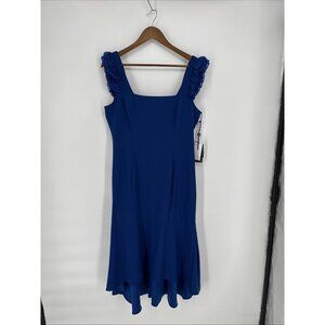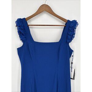Adrianna Papell Women's Size 10 Blue Crepe Satin Ruffled Square Neck Midi Dress
