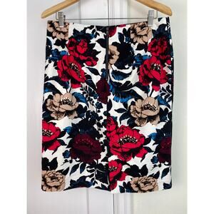 Adrianna Papell Women's Size 12 Cream Black Piping Colorful Floral Pencil Skirt