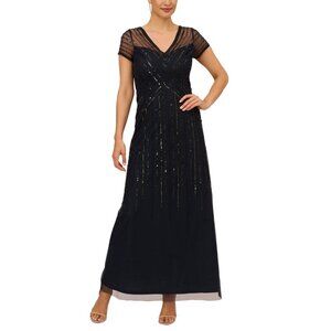 Adrianna Papell Womens Beaded V Neck Gown Dress