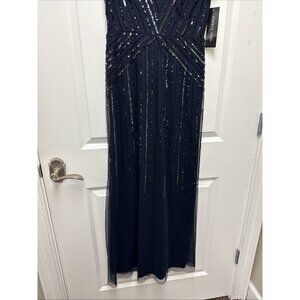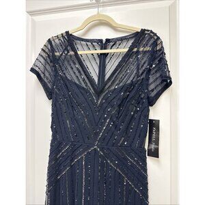 Adrianna Papell Womens Size 2 Navy Beaded V Neck Formal Gown Cocktail Dress NWT