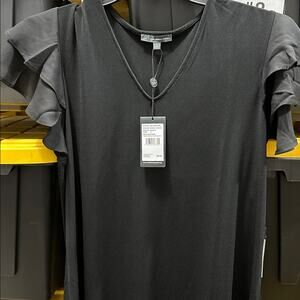 Adrianna Papell Women's V Neck Double Flutter Sleeve Black Dress NWT Size L